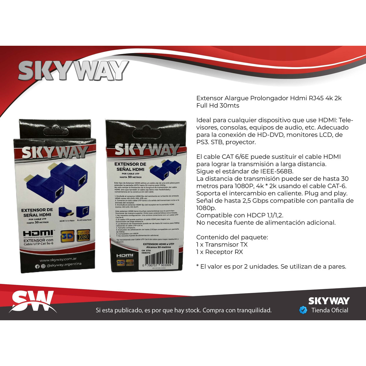 Extensor Alargue Prolongador Hdmi RJ45 4k 2k Full Hd 30mts