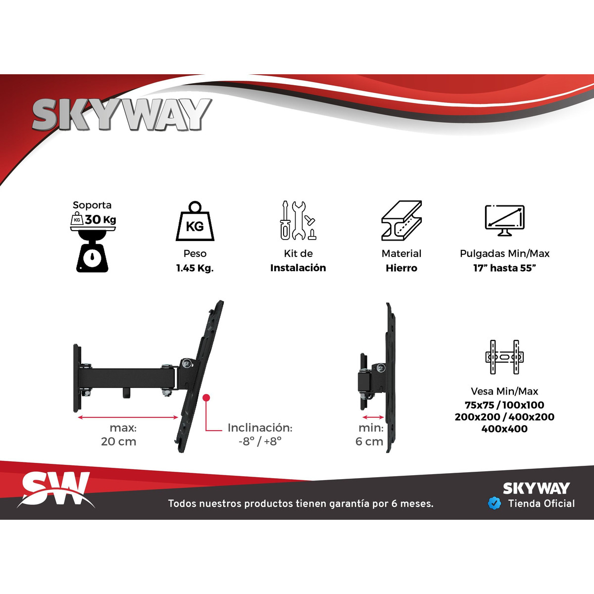 Está diseñado para montar pantallas de 17 a 55' con un peso máximo de 30 kg.