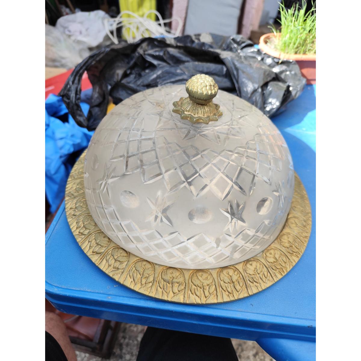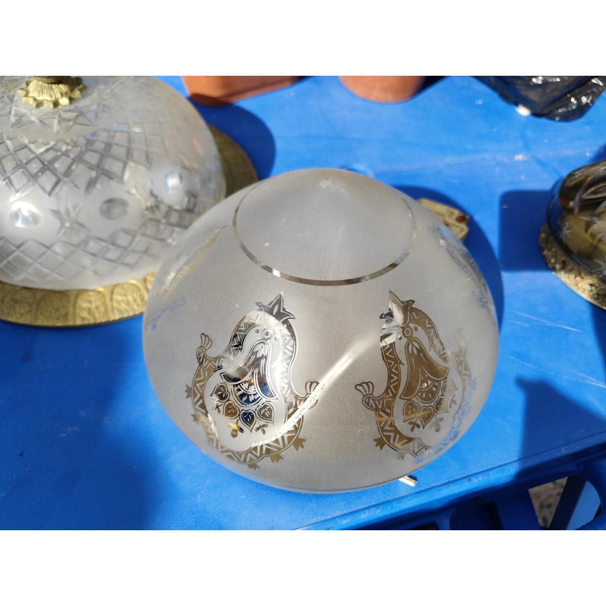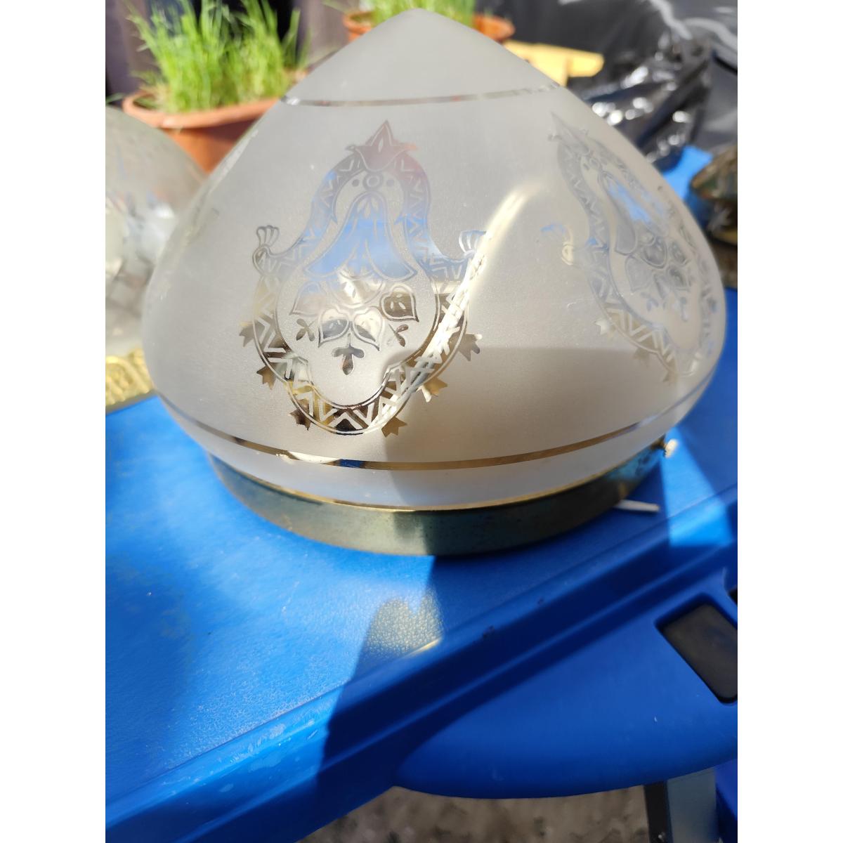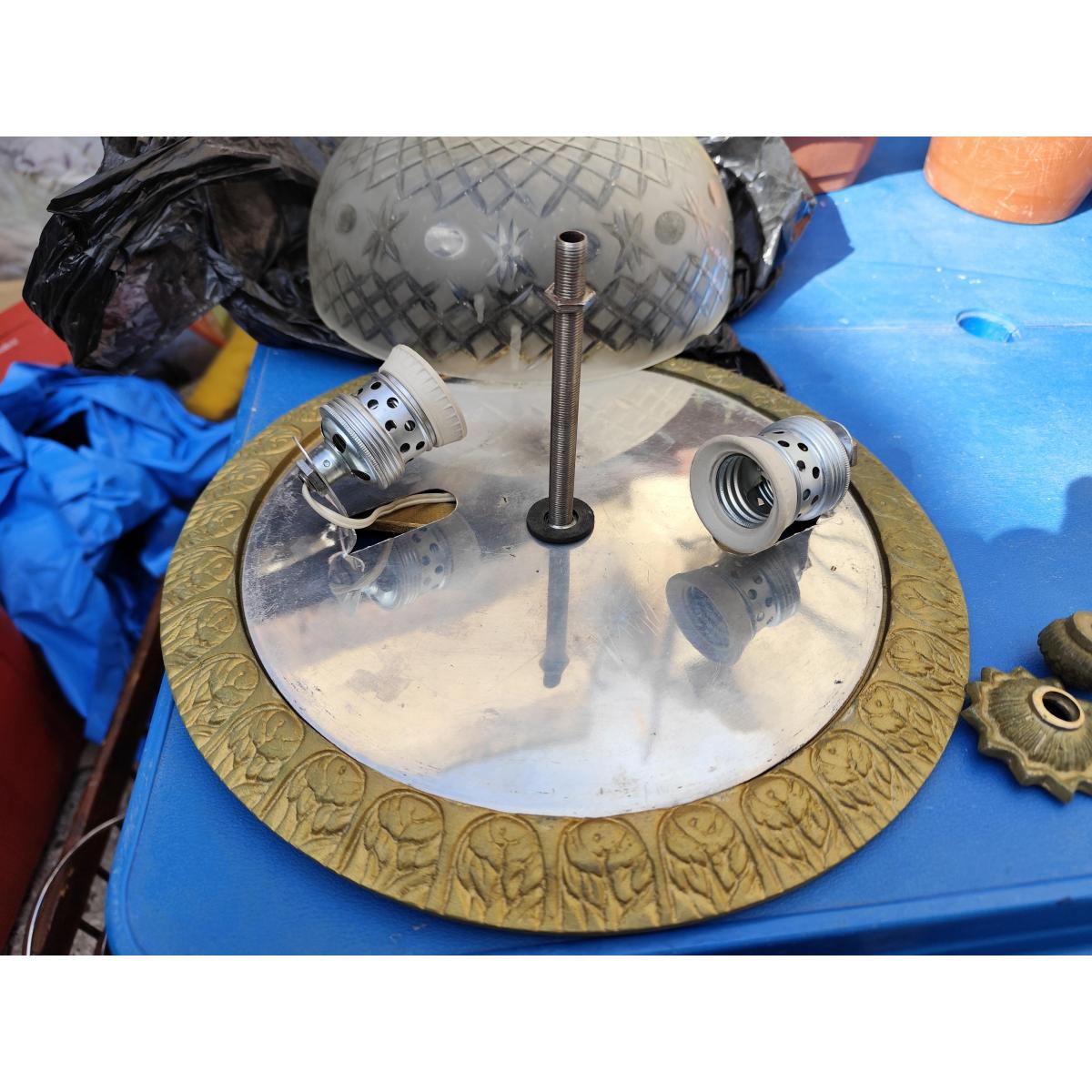3) bronce y vidrio opalina claro con dibujo para 2 focos