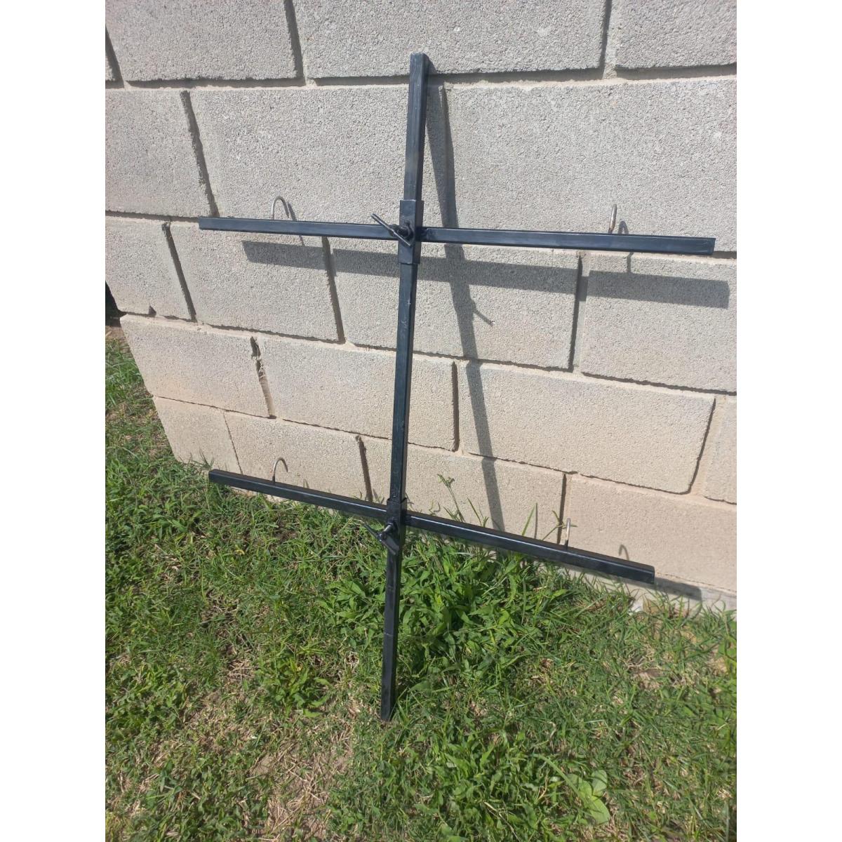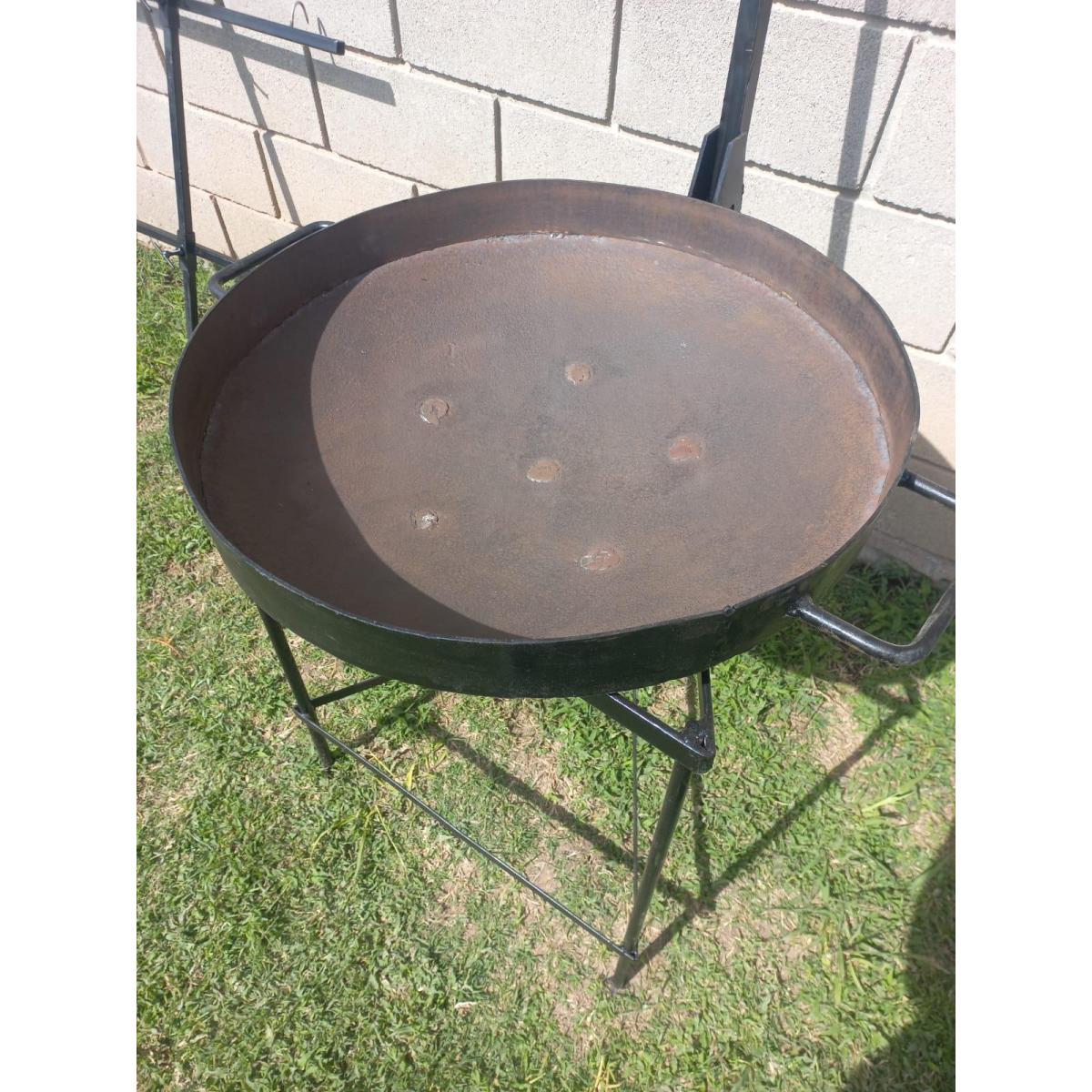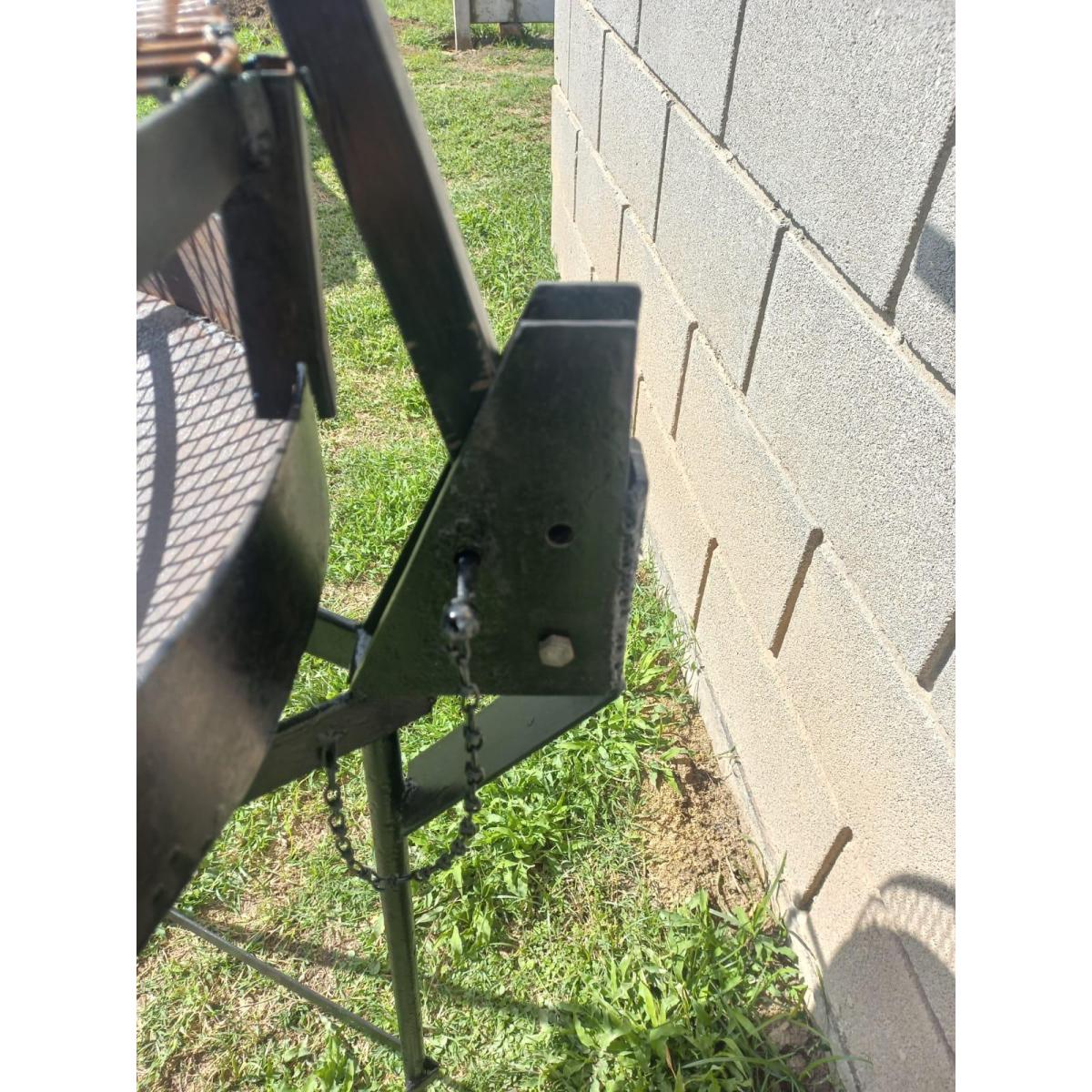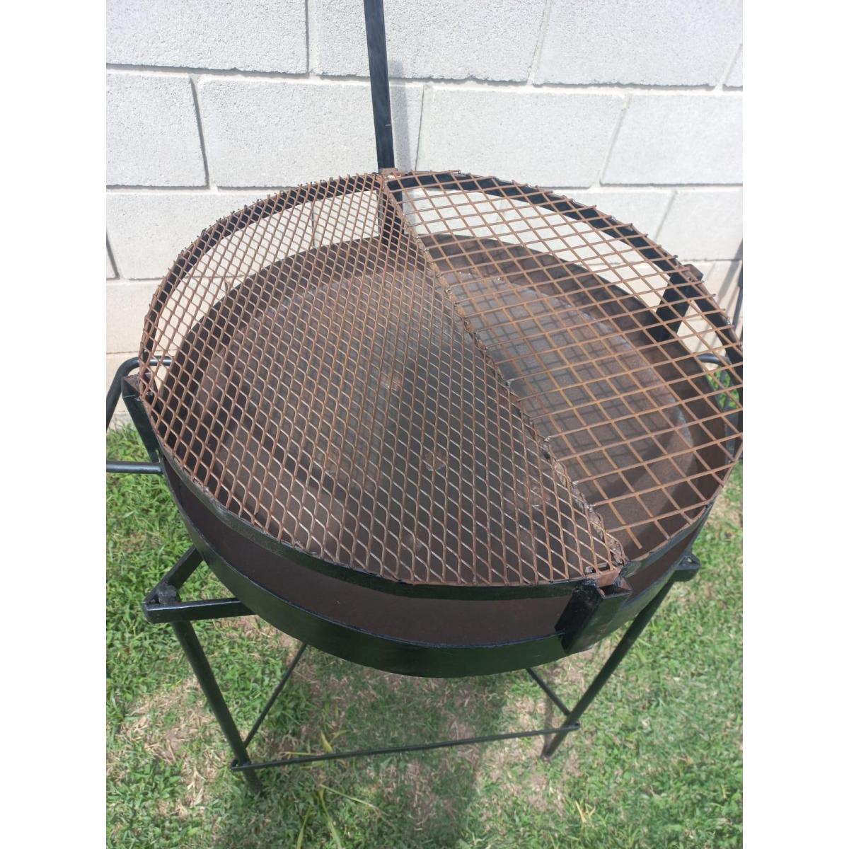 Fogonero hecho con disco de arado. Incluye parrilla removible, estaca regulable, atizador y palita. Todo nuevo. Base triangular de 90 cm, diámetro 60 cm. Su consulta no molesta.