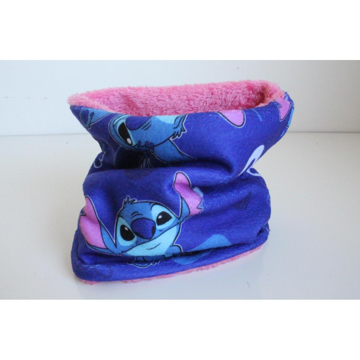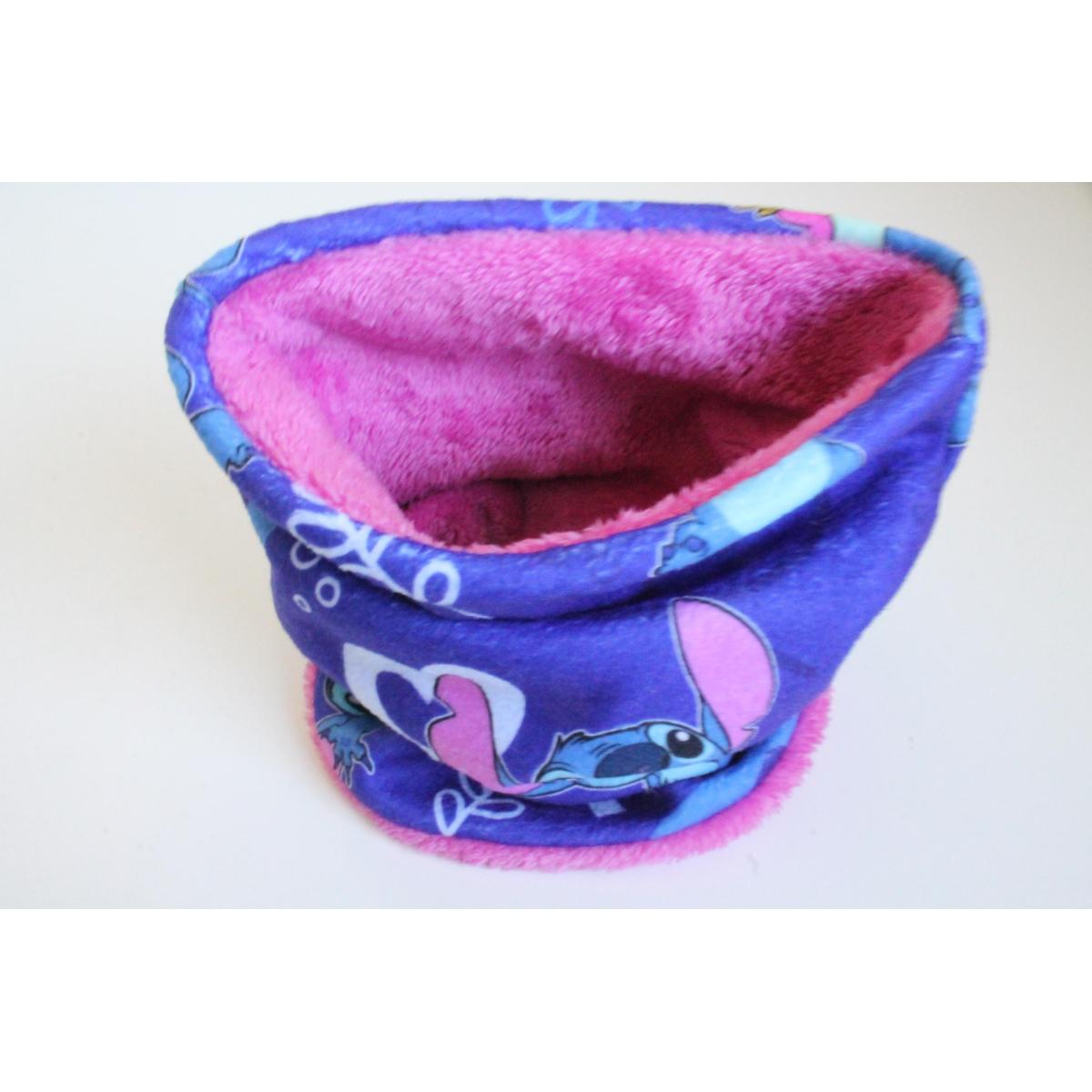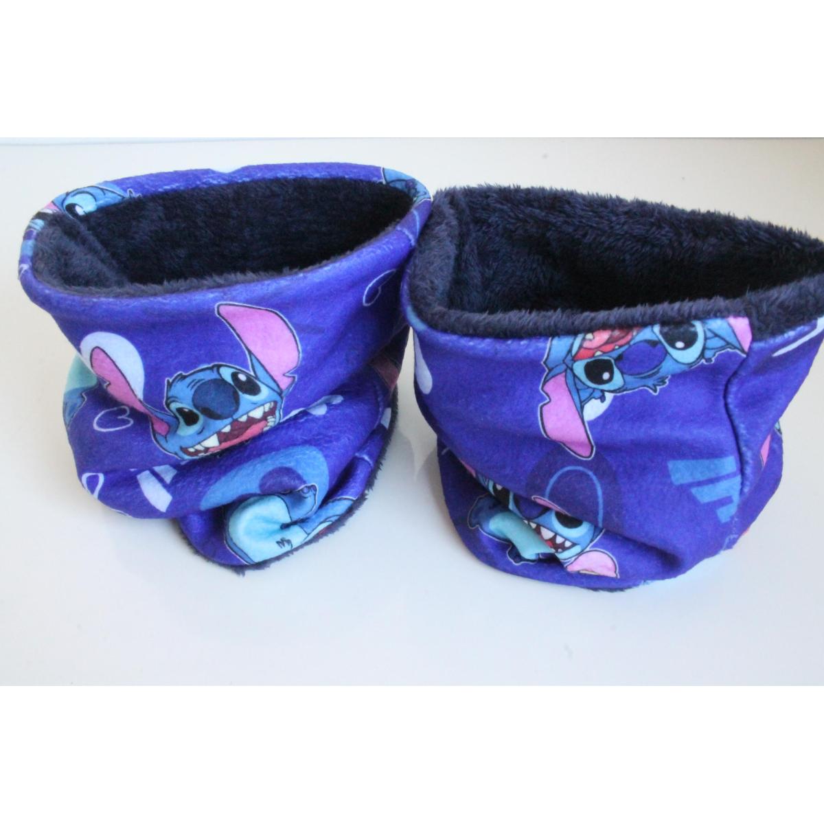 Estan confeccionados con polar estampado de Stich y Jersey de piel, en 2 tonos de rosa y azul marino.