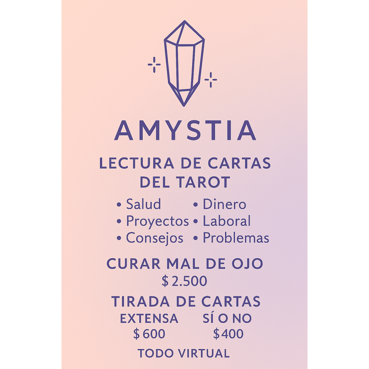 Ofrezco lecturas personalizadas de tarot que te ayudan a ver con más claridad tu presente, entender tu pasado y tomar decisiones conscientes para tu futuro.